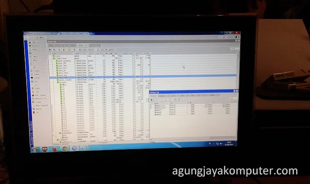 Dari jawaban yang di berikan mas Ipul saya rasa sangat jelas dan gamblang sekali bahwa permasalahan di warnet ini adalah di sebabkan karena tidak adanya pembagian jalur bandwidth per-client yang menyebabkan client akan rebutan bandwidth ketika semua clent dalam kondisi on atau digunakan, dan hal ini berakibat fatal pada game online karena dalam game online di butuhkan koneksi yang stabil agar akurasi game lancar namun yang terjadi adalah ketika semua client digunakan dan tidak adanya pembagian bandwidth pada router maka istilah DC alias Disconect pada game ataupun juga Lag pasti akan terjadi. setelah kami mengetahui permasalahan pokok dari warnet tersebut maka tim agungjayakomputer segera melakukan instalasi Router Mikrotik dengan konfigurasi yang melibat kan pembagian badwidth per-client, pengaturan jalur icmp untuk meminimalisir latency dari ping kitika trafick full serta pengaturan download manager dan streaming yang di buat jalur sendiri supaya tidak mengganggu jalur game ketika semuanya di gunakan.